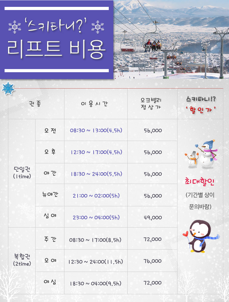 리프트비용 2 페이지 > 오크밸리렌탈샵 스키타니